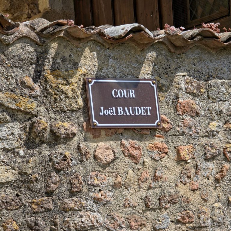 Je m'arrête devant la cour du Prieuré Saint-Sauveur, la lumière du couchant souligne les ombres des arcades, et là, gravé dans le mur, le nom de Joël.
